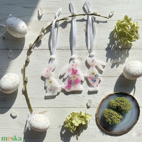 Húsvéti nyuszi függődísz – epoxi, valódi szárított virágokkal