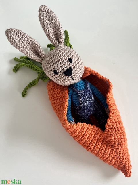 Horgolt nyuszi répa hálózsákban