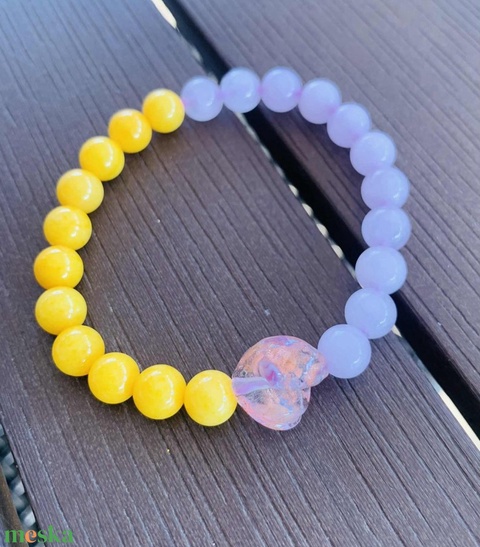 Sárga jáde és rózsakvarc ásvány karkötő