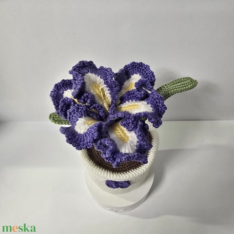 Horgolt kaspós Írisz virág