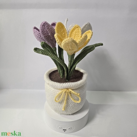 Horgolt kaspós Krokkusz virág