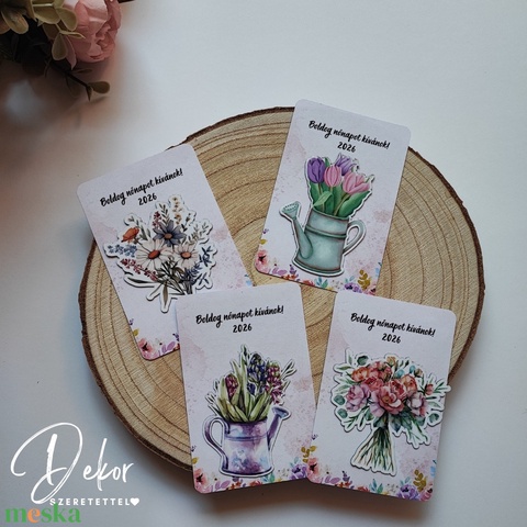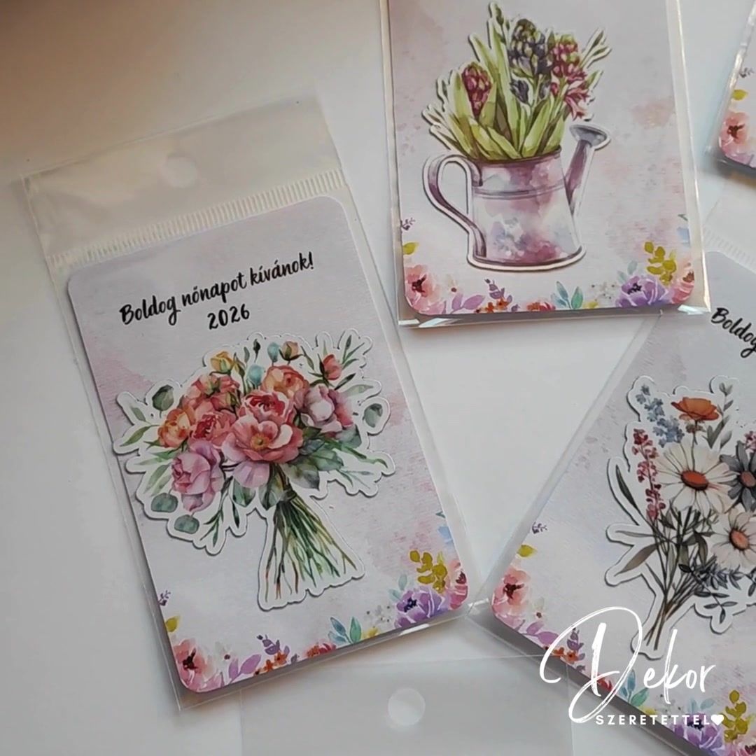 Virágos hűtőmágnes kártyával nőnapra