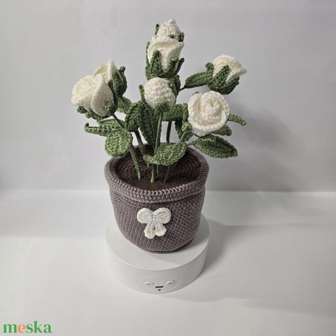 Horgolt szirmos rózsa kaspóban
