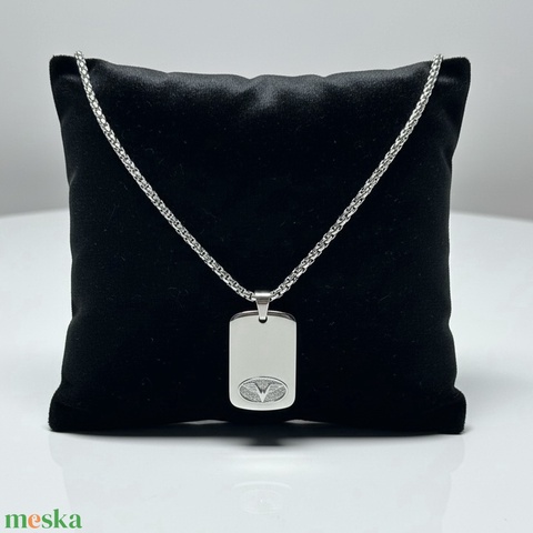 Férfi nyaklánc acélból stilizált sólyom medállal, acél lánc férfiaknak dögcédulával fényes acélból, nagyon férfias lánc!