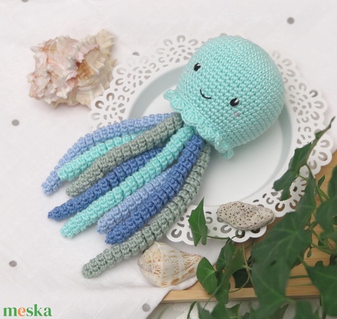Horgolt menta polip alvóka babajáték