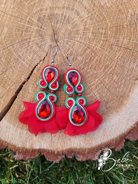 Dupla köves virág nemzetiszín kézműves sujtás fülbevaló