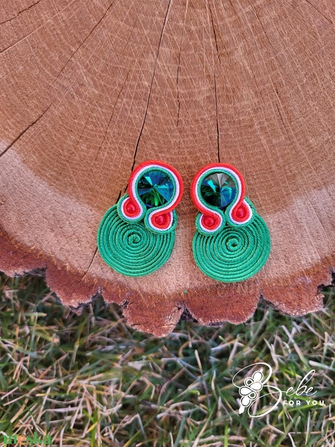 Nemzetiszín tekert kézműves sujtás fülbevaló