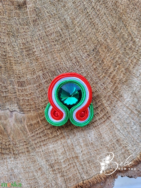 Kokárda kerek nemzetiszín kézműves sujtás bross
