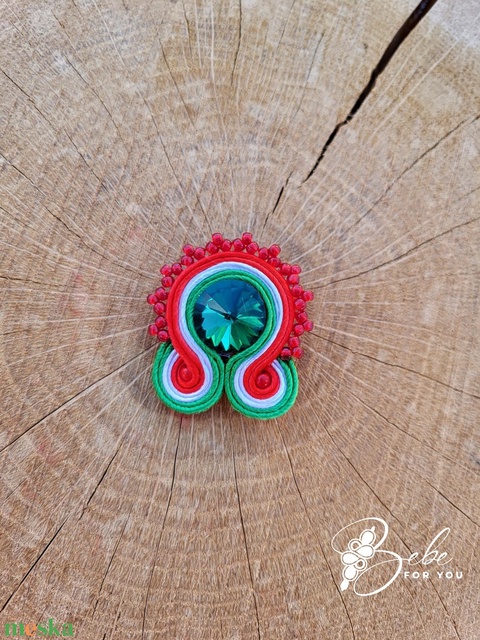 Kokárda kerek gyöngycsipkézett nemzetiszín kézműves sujtás bross