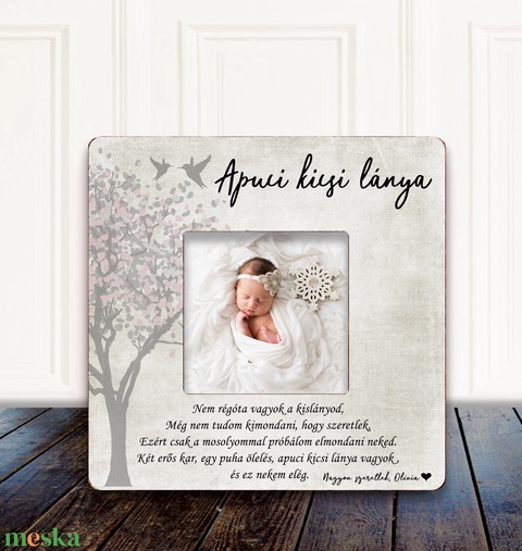 Különleges és egyedi ajándék apának a kicsi lánykájától, képkeret egy kedves üzenettel a kislány fotójával. Finom, letisztult stílus, személyre szabható szöveg.