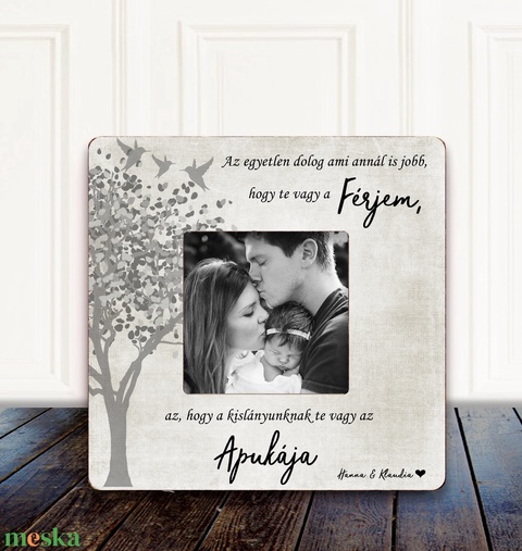 Ez a személyre szóló fényképkeret egy elegáns és különleges Valentin-napi ajándék férjnek a feleségtől. Egy családi fotóval és egy kedves idézettel készül, amely családi kapcsolat különleges kötelékét ünnepli.