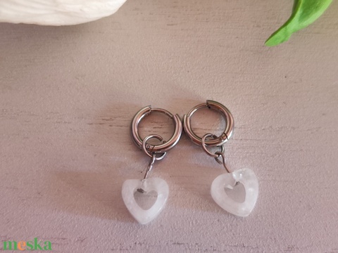 Nemesacél fülbevaló, hegyikristály szív medállal!