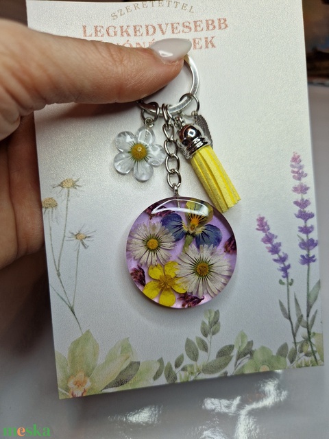 - Anyaga: műgyanta, szerelékek, lánc, csillám, hajtincs, kulcstartó alap