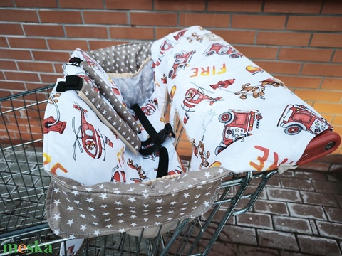 Bevásárlókocsi huzat ,teljesen bélelt, öt ponton záródó biztonsági övvel, ajándék tároló zsákkal