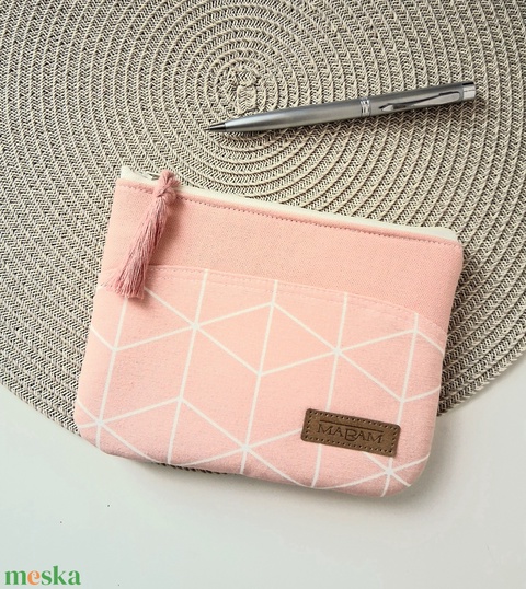 Barack színű, geometrikus mintás, női lapos neszesszer, tok