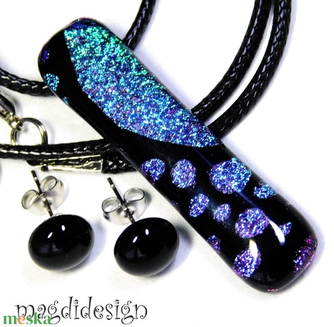 Univerzum kék-fekete üvegékszer szett, nyaklánc, pötty fülbevaló