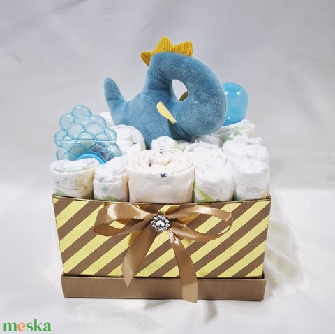 Dino baba box, pelenkatorta 2-5 kg pelenkatorony, babaváró csomag, baba kelengye