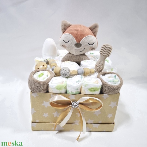 Kis róka baba box, pelenkatorta 2-5 kg pelenkatorony, babaváró csomag, baba kelengye