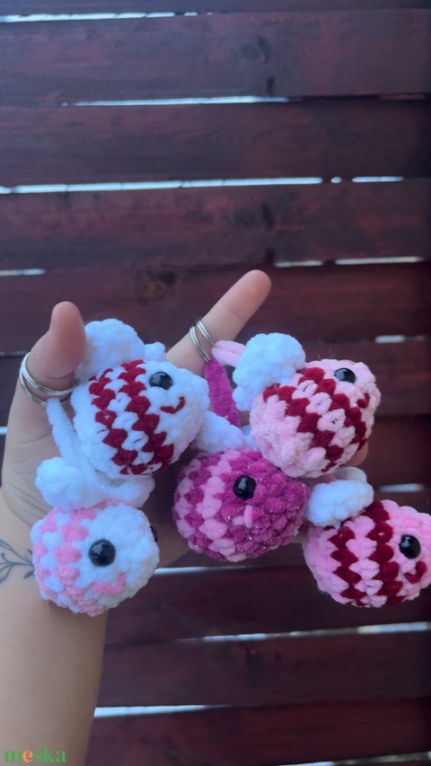 - Anyaga: zsenília fonal, tömőanyag, biztonsági szem, kulcskarika