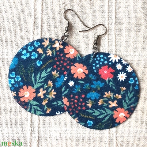 Kék alapon virágmintás textilfülbevaló