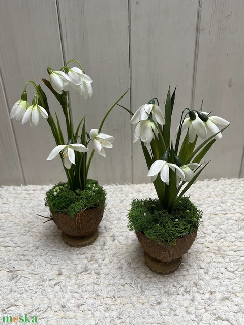 Hóvirágos tavaszi asztaldísz – élethű kézműves dekoráció