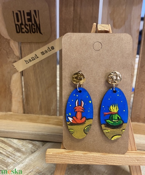 Kis herceg - kézzel festett fa fülbevaló, ovális