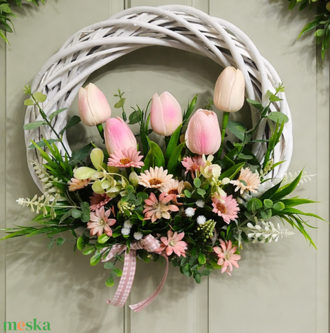 Tavaszi tulipános ajtódísz-finom pasztell hangulatban