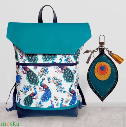 Elegancia és Praktikum: 4 az 1-ben Pávás Hátitáska & Kulcstartó/táskadísz