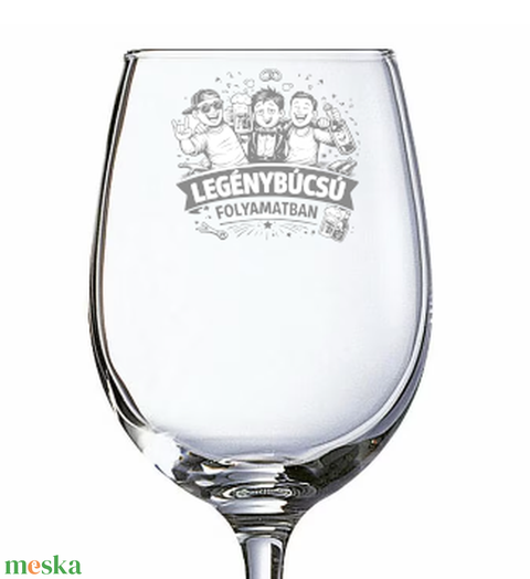 Ez a legénybúcsús gravírozott borospohár garantáltan feldobja a hangulatot, és tökéletes emlék marad az egyik legjobb férfi buliról.