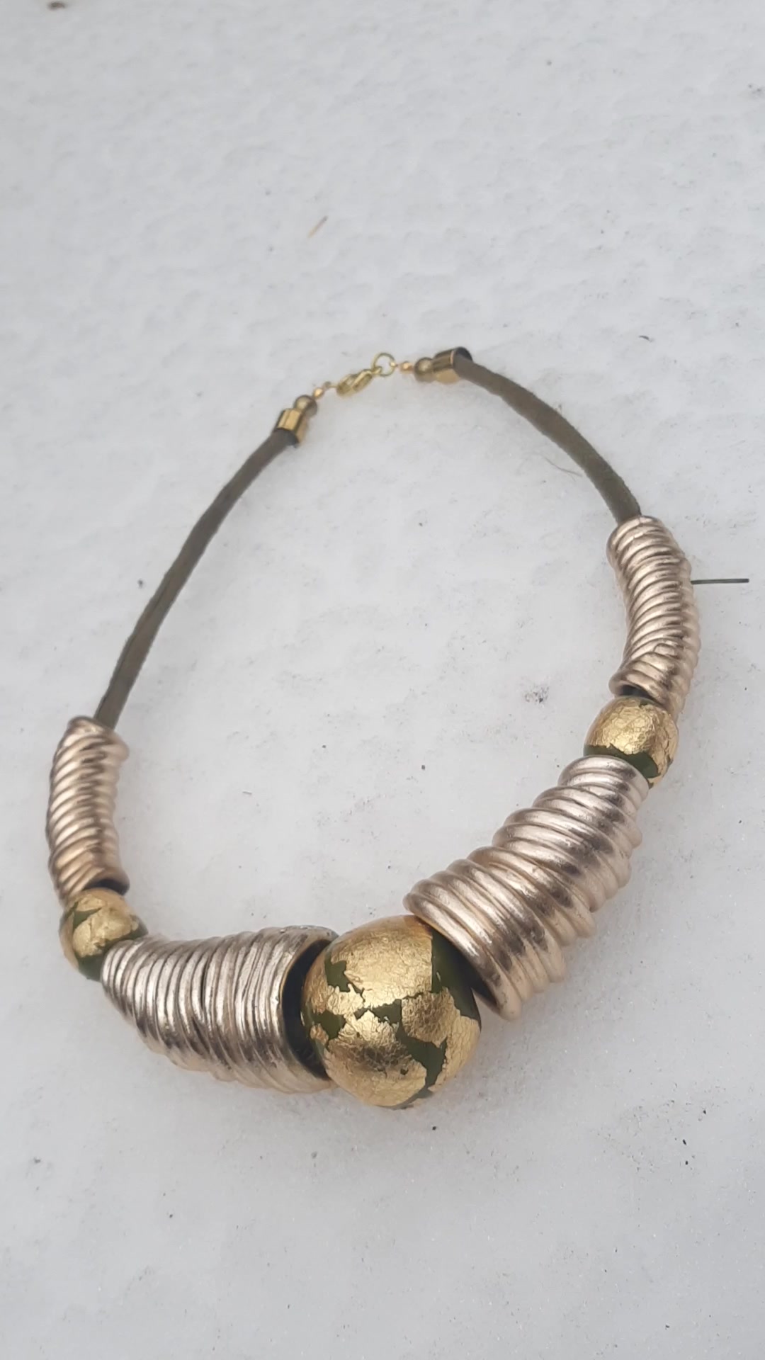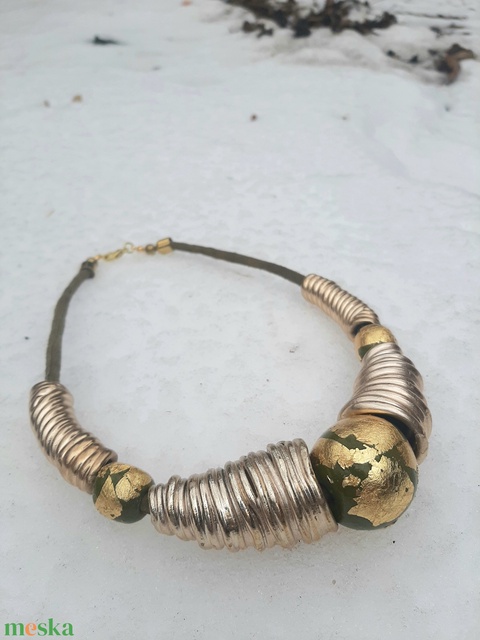 plast-kitt gyurma, fém szerelékek (allergiamentes), bőr, aranyfüst