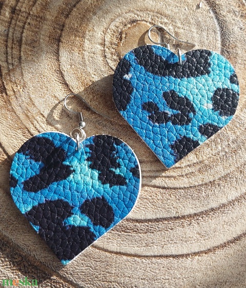 Kék szív alakú bőr fülbevaló