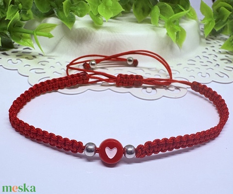 Valentin napi ajándék nőknek-Piros szívecskés makramé karkötő