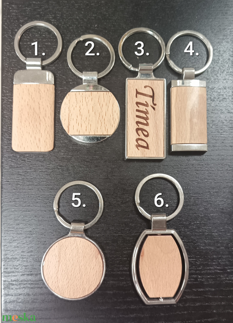 Fém kulcstartó fa betéttel