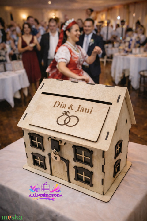 Nászajándék gyűjtő ház, esküvői pénzgyűjtő ház, névre szólóan, dátummal