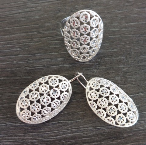 Ezüst virágos vésett szett