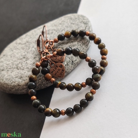 - Anyaga: fülbevaló alap, sólyomszem, vörösréz drót
