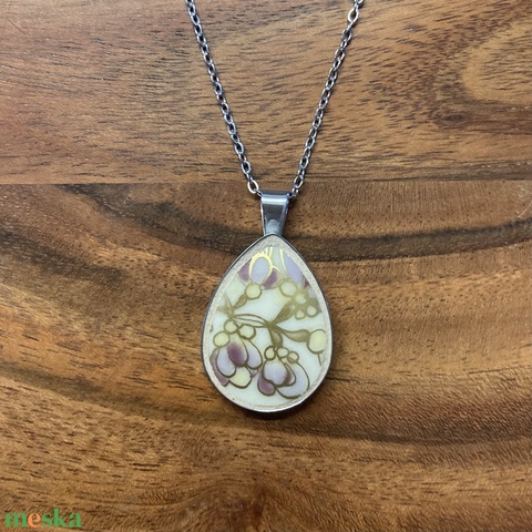 Mentett porcelán darabok - virágos nyaklánc - nemesacél csepp medálos