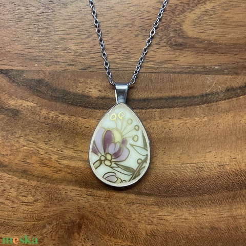 Mentett porcelán darabok - virágos nyaklánc - nemesacél csepp medálos