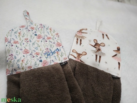 Baba törölköző, ovis törölköző, egérkék és mezei virágok névhimzéssel