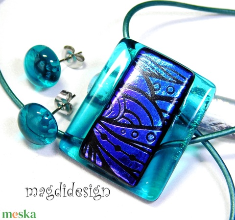 Lila mintás dichroic türkizen üvegékszer szett stiftes fülbevaló