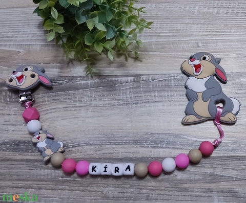 Nyuszis szilikon cumilánc rágókával