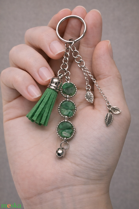 Ásványos kulcstartó medállal és bojttal
