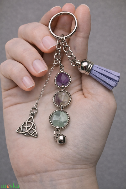 Ásványos kulcstartó medállal és bojttal