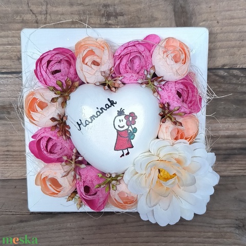 „Mamának” – szív virágos keretben