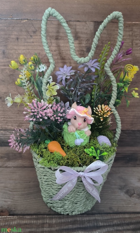 Tavaszi nyuszis kosár - szürke