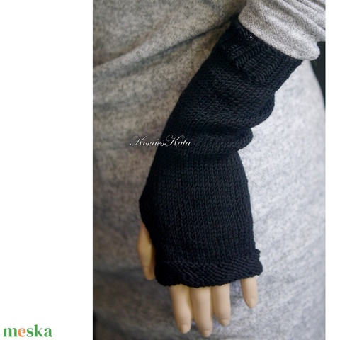 BOSZI KESZTYŰ / merinó - exkluzív kézzel kötött kesztyűszár, kézmelegítő / fekete KÉSZLETEN