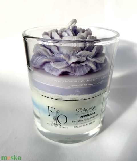 - Anyag/Összetevő szójaviasz, pamutkanóc, levendula, növény, növényviasz, virág, levendulaolaj