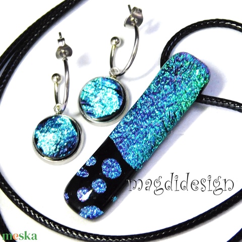 Univerzum türkiz-rózsaszín fekete üvegékszer szett, nyaklánc, lógó fülbevaló