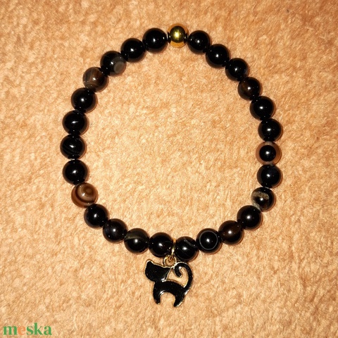 Macskás fekete achát ásványkarkötő