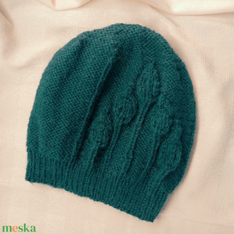 Tiszta gyapjú, asszimetrikus mintával kötött sapka